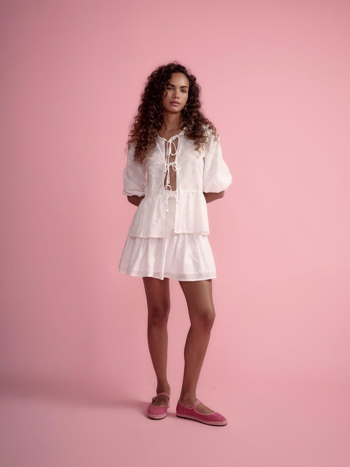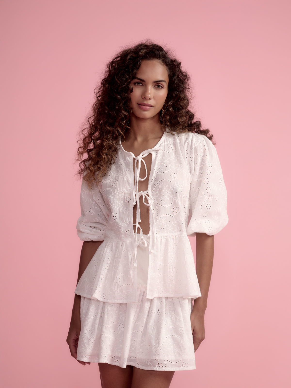 Top Lima, una blusa fresca, femenina y lleno de encanto. Su diseño ligero con lazos frontales y mangas con volumen aporta un toque vibrante y romántico, convirtiéndolo en la pieza ideal para realzar tus looks de verano.