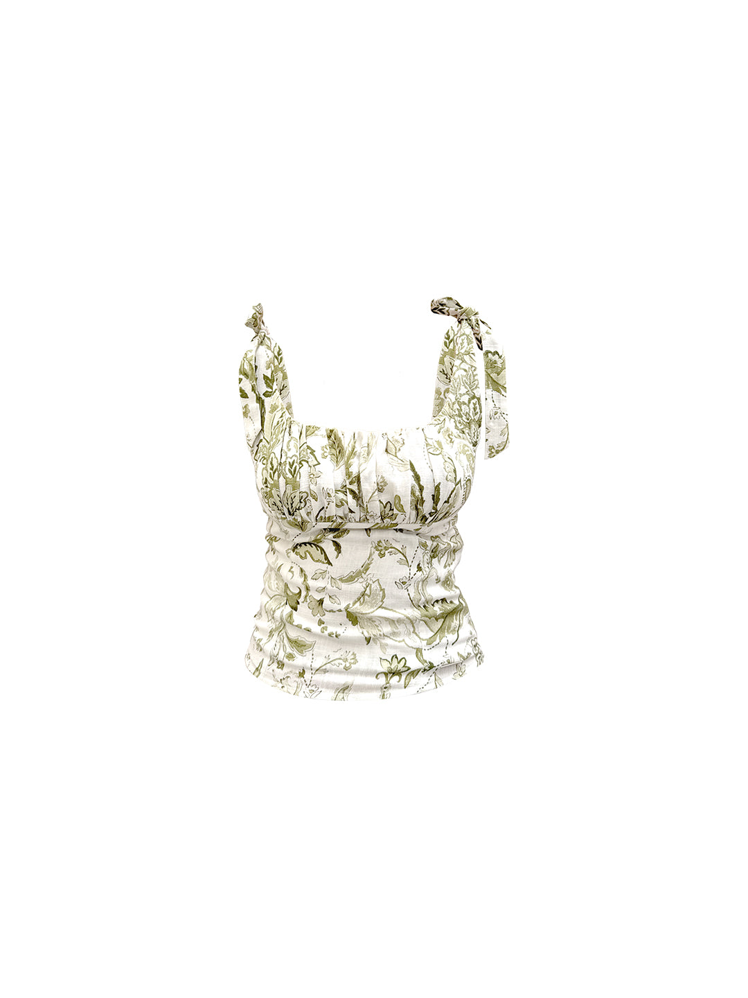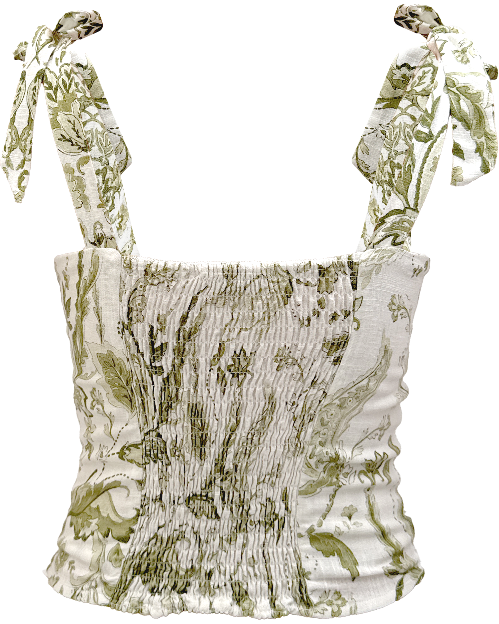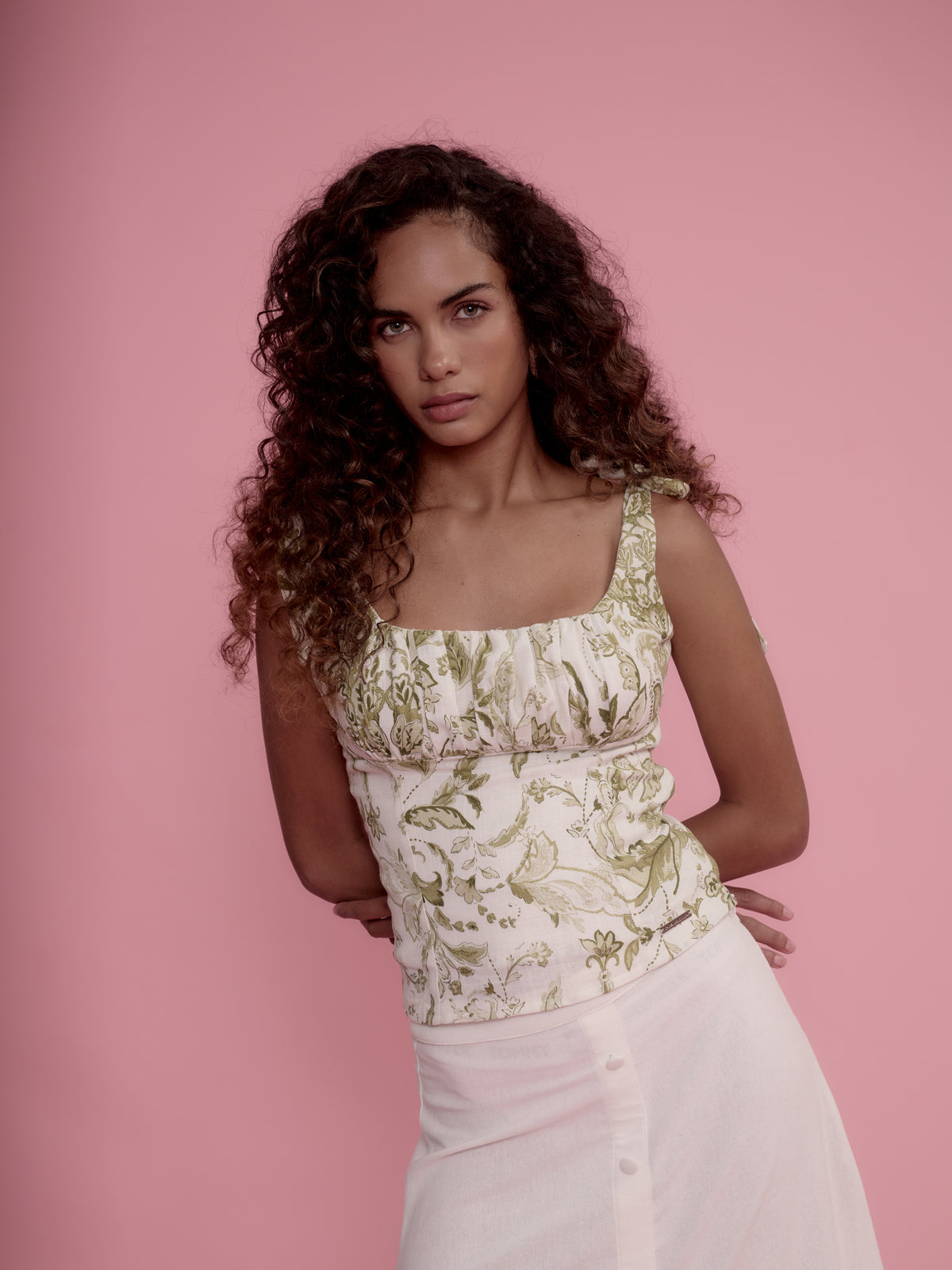 Top Sol con corrugado frontal, diseño fresco con lazos que permiten regular la altura y un práctico cierre lateral para un ajuste perfecto. Femenino, versátil e ideal para el verano.