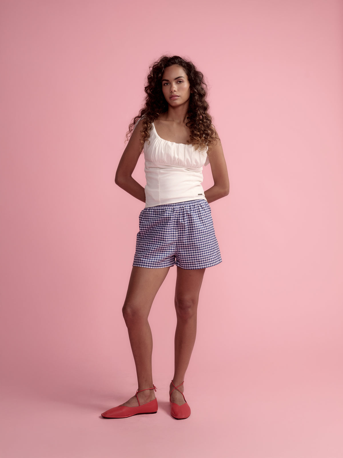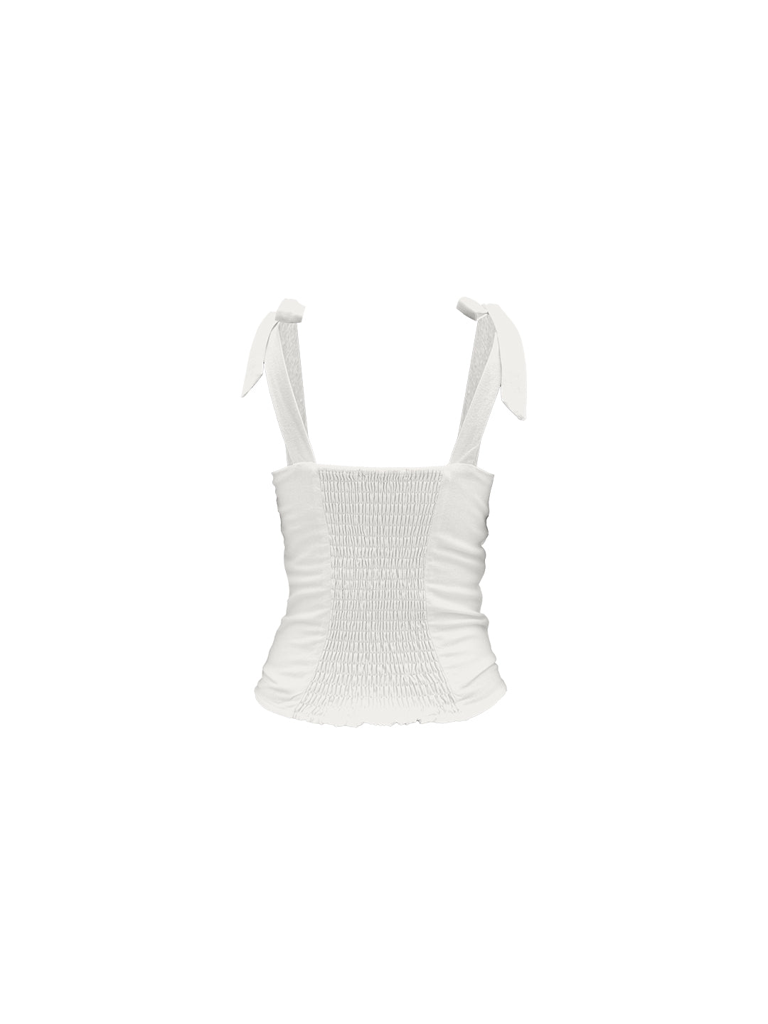 Top Sol con corrugado frontal, diseño fresco con lazos que permiten regular la altura y un práctico cierre lateral para un ajuste perfecto. Femenino, versátil e ideal para el verano.